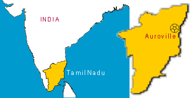 Auroville ligt aan de zuid-oost kust van India, ongeveer 150 km ten zuiden van Chennai en 10 km ten noorden van Pondicherry.